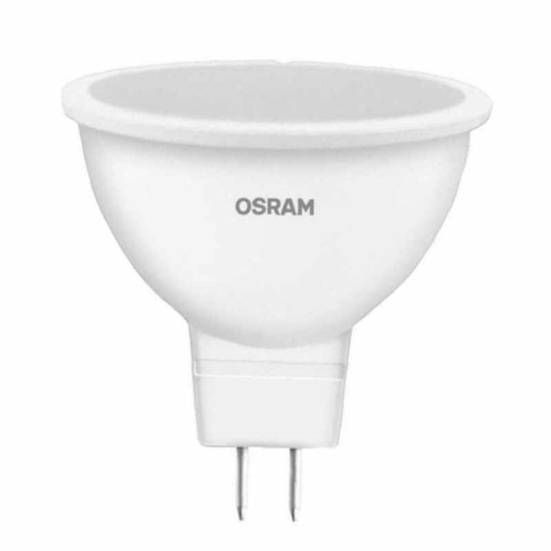 10шт/уп. Лампа LED Софит 5Вт 220-240V GU5.3 MR16 400Лм 3000К Угол 110 град. D-50mm L-45mm Свет Теплый белый OSRAM, уп. 10шт