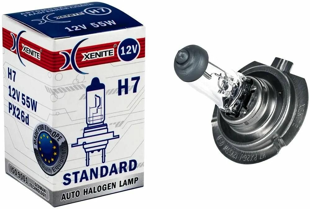 Лампа галогеновая головного света H7 PX26d 3200K Standart 12V 55W картон 1шт, XENITE 1007014