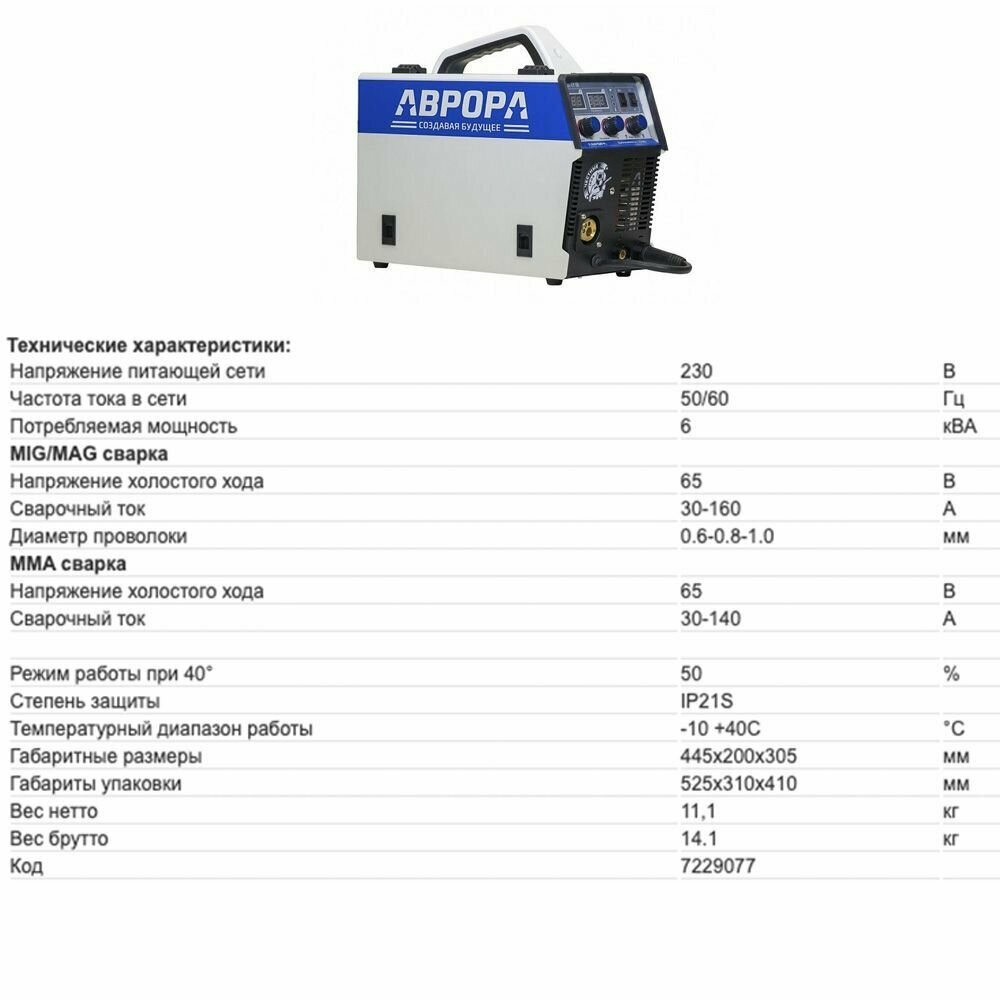 Полуавтомат инвертор Aurora Динамика 1600 3 в 1 MIG-MAG, NOGAS, MMA интересное: