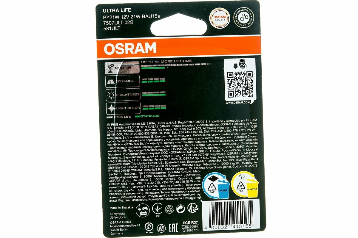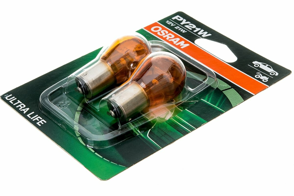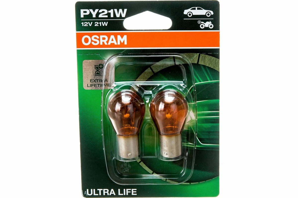 OSRAM 7507ULT-02B Лампа 12V PY21W 21W BAU15s OSRAM ULTRA LIFE 2 шт. блистер 7507ULT-02B