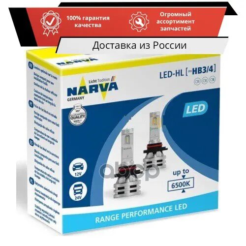 Лампа автомобильная Narva Range Performance LED HL, HB3,HB4 12/24V, 6500к