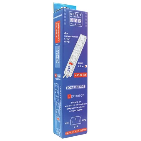 Сетевой фильтр 5 гнезд, 1.9 м, без заземления, 2.2 кВт, для подключения к UPS, Power Cube, SPG-B-6Ext