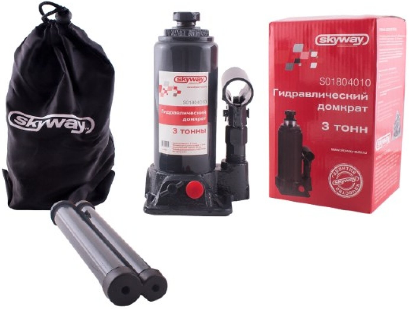Купить SKYWAY S01804010 Домкрат гидравлический "" бутылочный 3т h 175-345мм с клапаном в коробке+сумка; SKYWAY