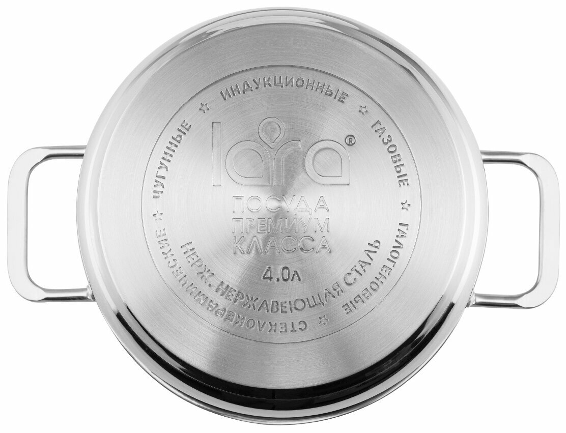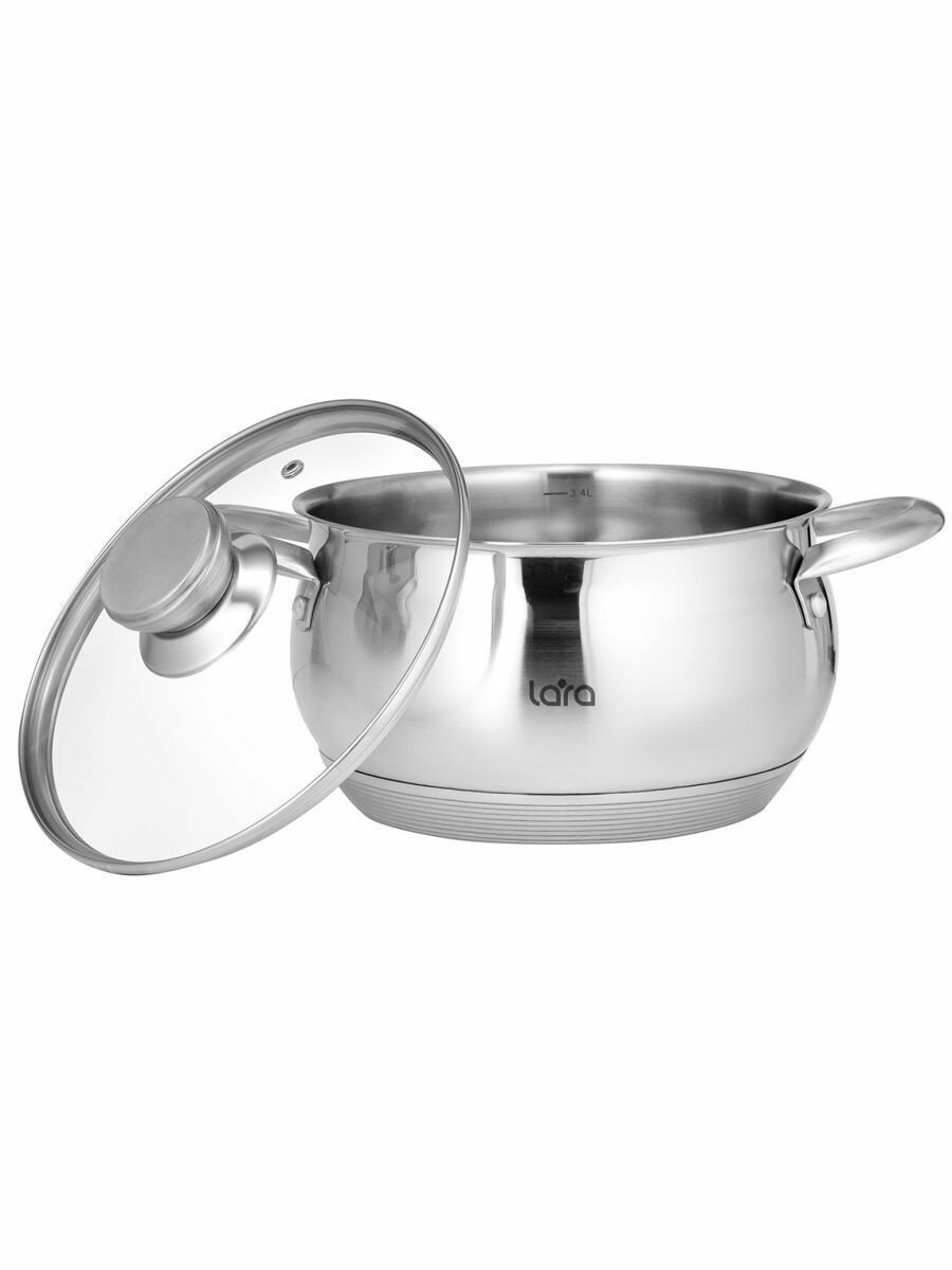 LR02-422 Кастрюля LARA (нерж) серия <майами> 3,5л 20x11,5см, капс. 9-ступенч.дно, крышка, шкала