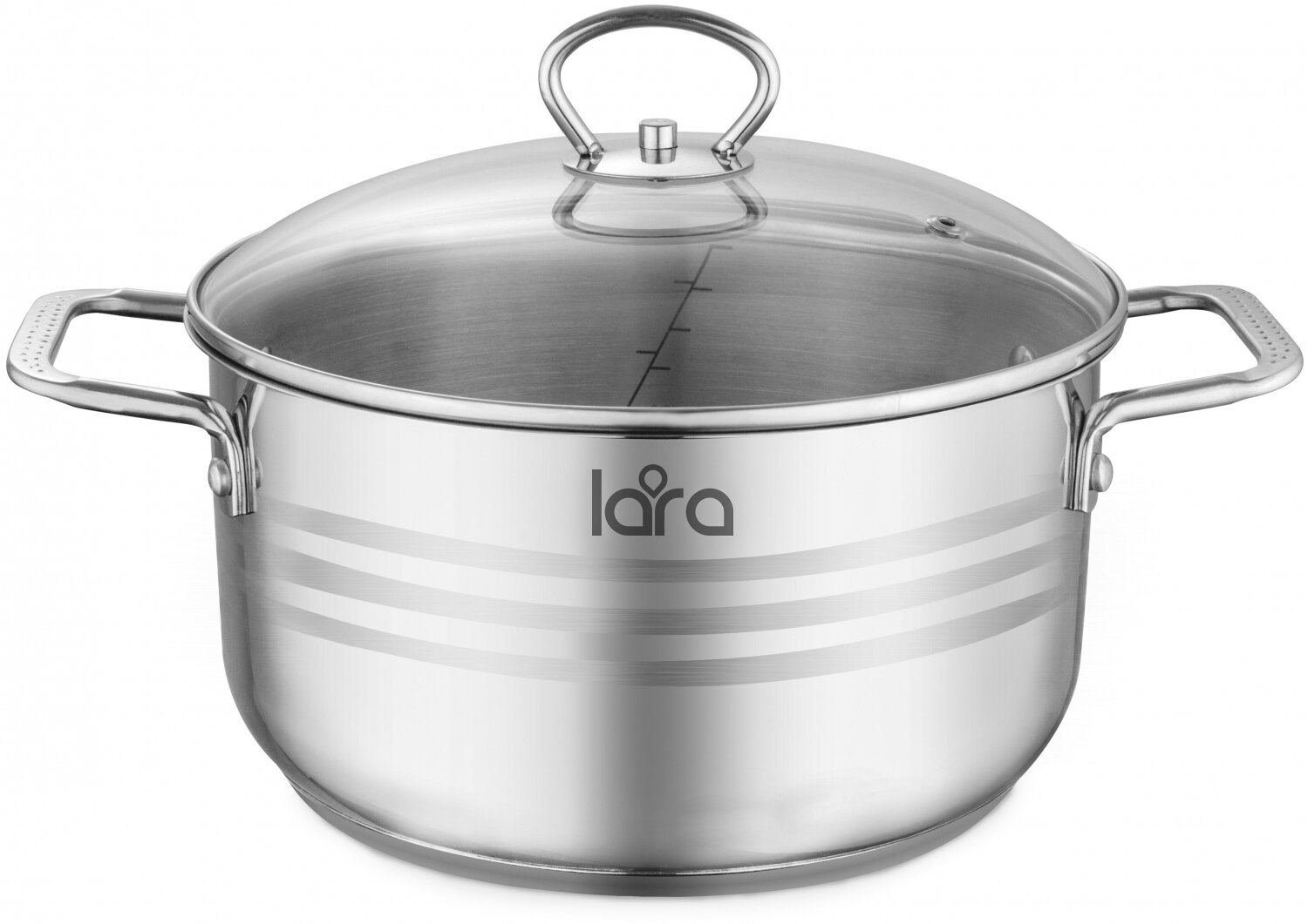 Кастрюля из нержавеющей стали LARA LR02-423: 6,4л, Майами матовая, d24см, с крышкой