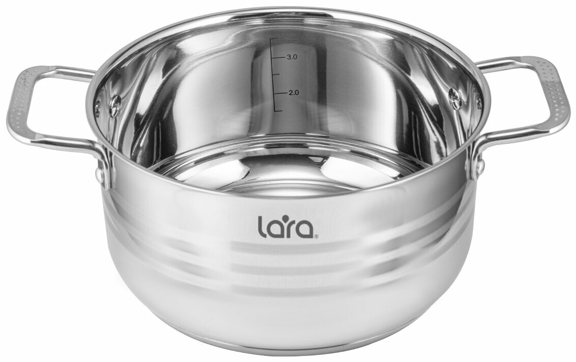 Кастрюля 2,7л LARA майами с крышкой, нерж., капс. 9-ступен. дно, шкала 18*10,5см LR02-421