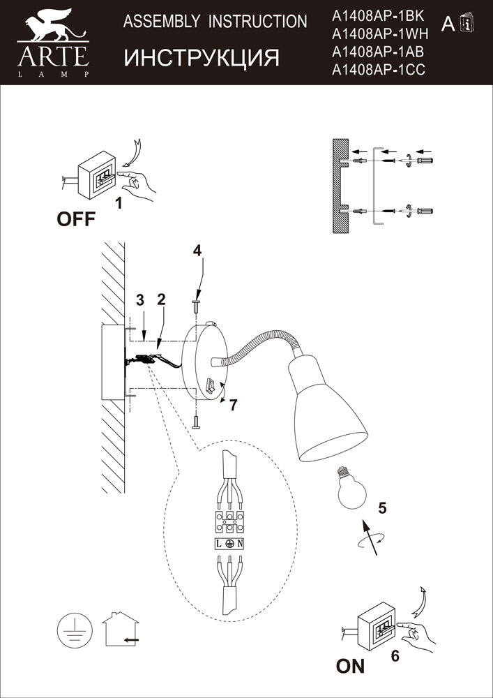 СохранитьARTE Lamp #ARTE LAMP A1408AP-1AB светильник настенный интересное: