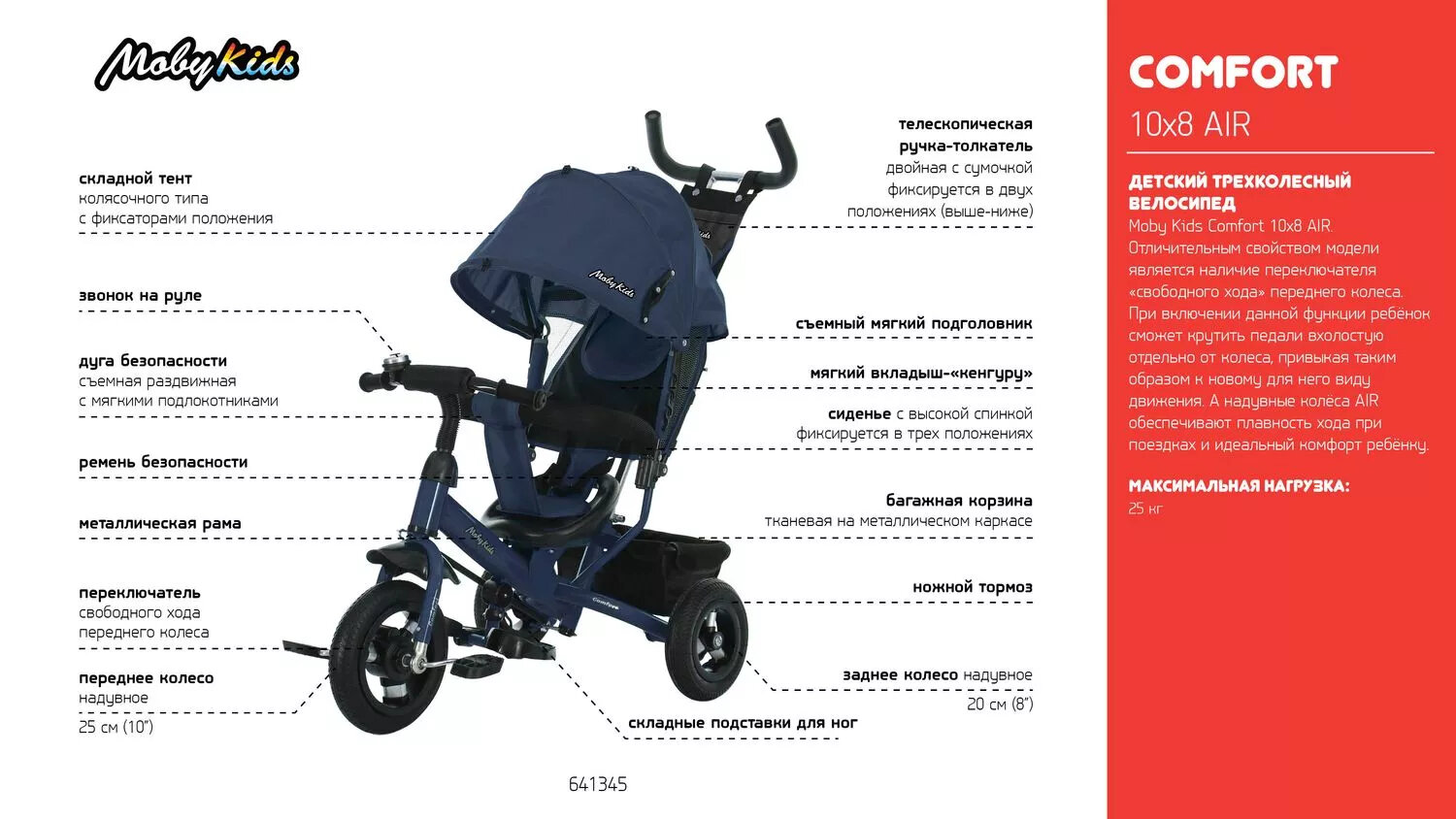 Ниже Вы можете прочитать отзывы на Велосипед 3 колесный Comfort 10x8 AIR, фиолетовый Moby Kids 649077, ознакомится с подробными характеристиками, посмотреть интересные обзоры и фотографии на Велосипед 3 колесный Comfort 10x8 AIR, фиолетовый Moby Kids 649077.