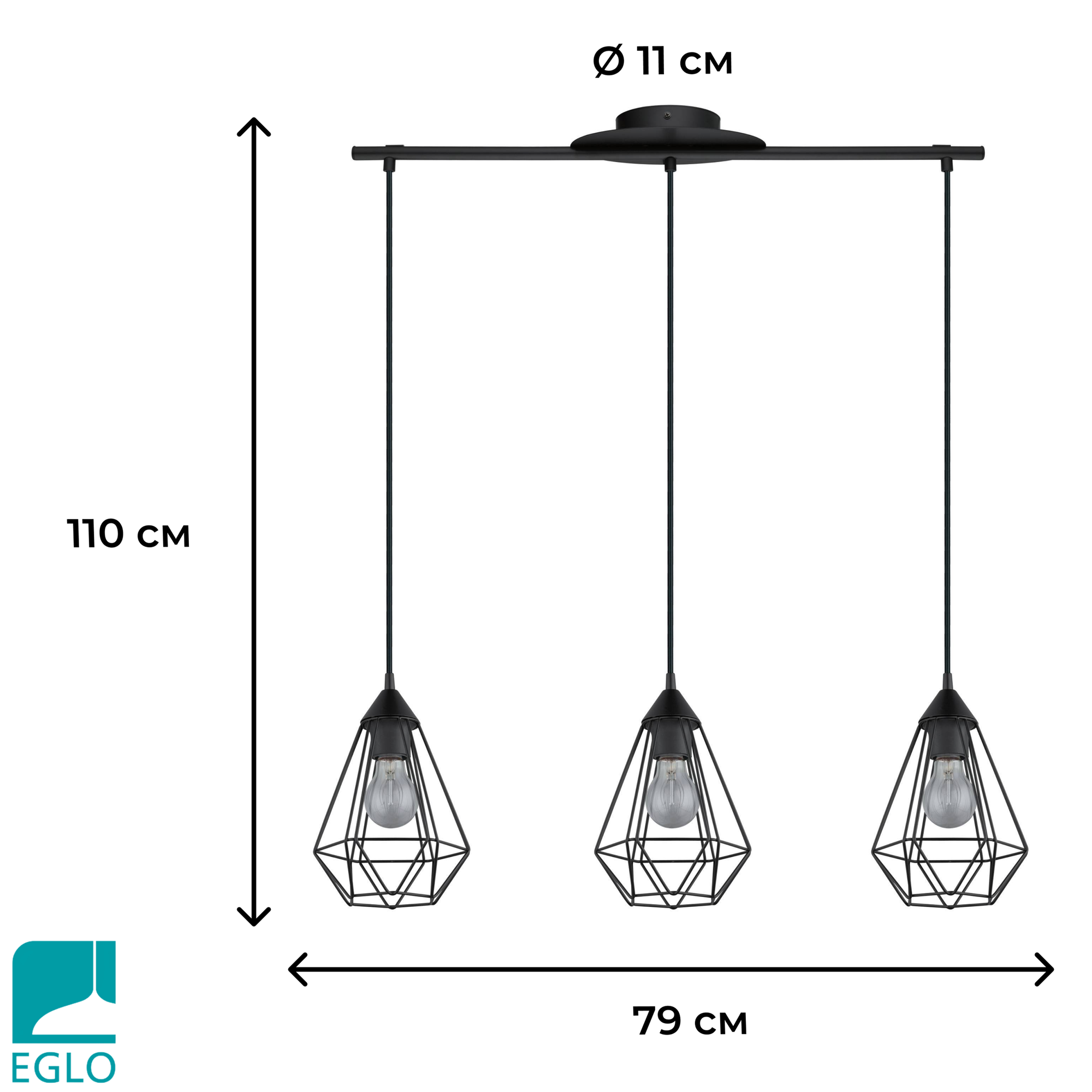 94189 Подвес TARBES, 3x60W (E27), L790, Н1100, сталь, пластик, черный