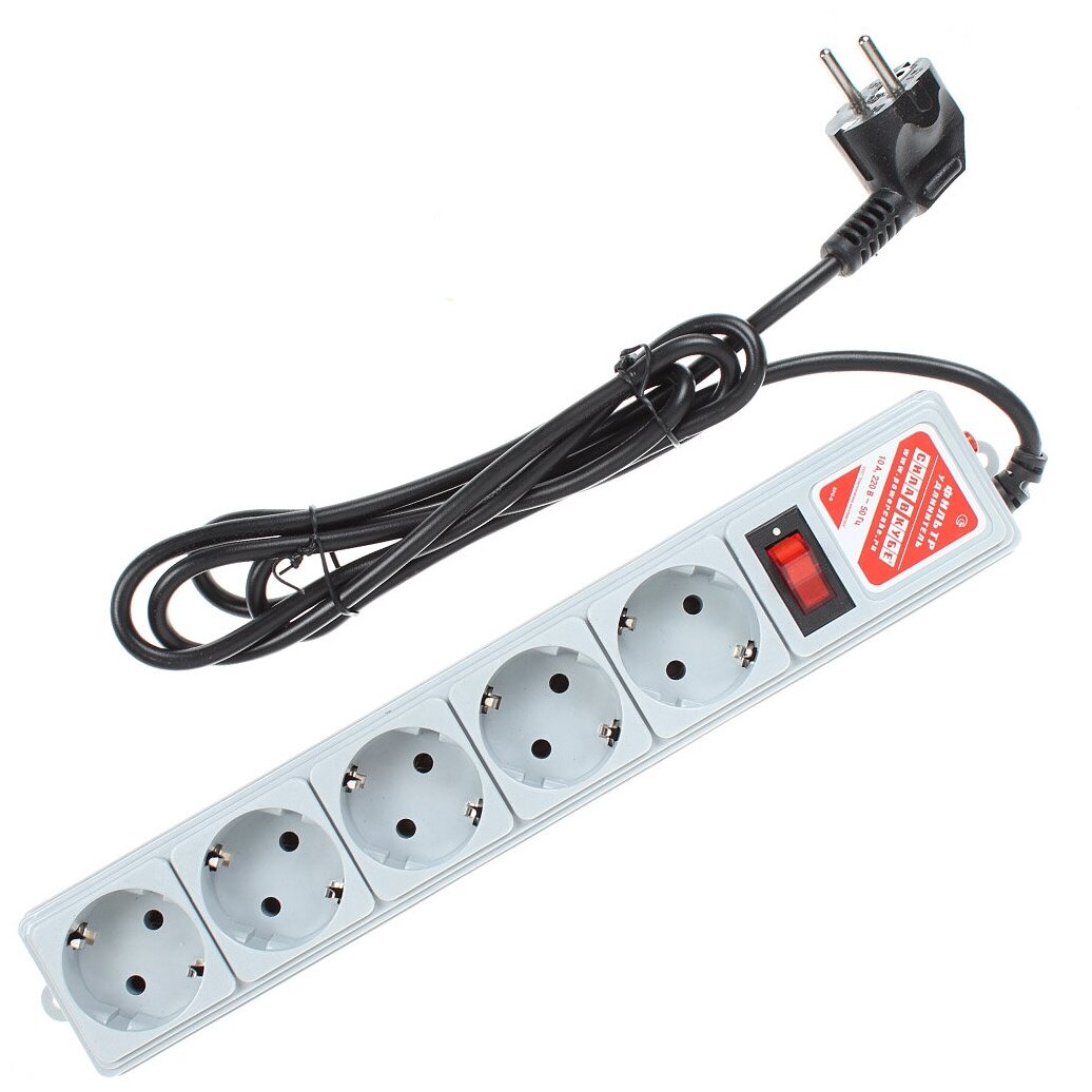 Сетевой фильтр РС 1,9 м 5 гнезд, цвет серый 10А