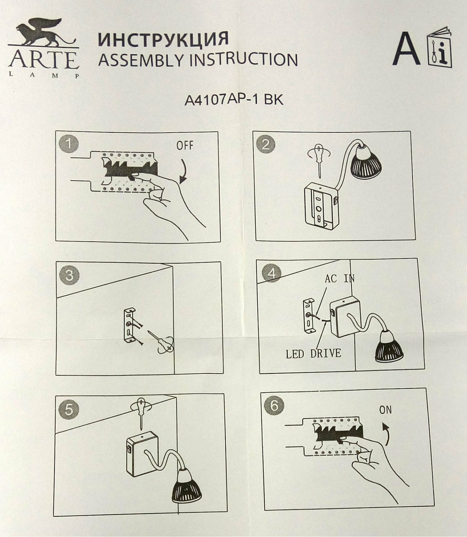 Бра Arte Lamp A4107 A4107AP-1BK