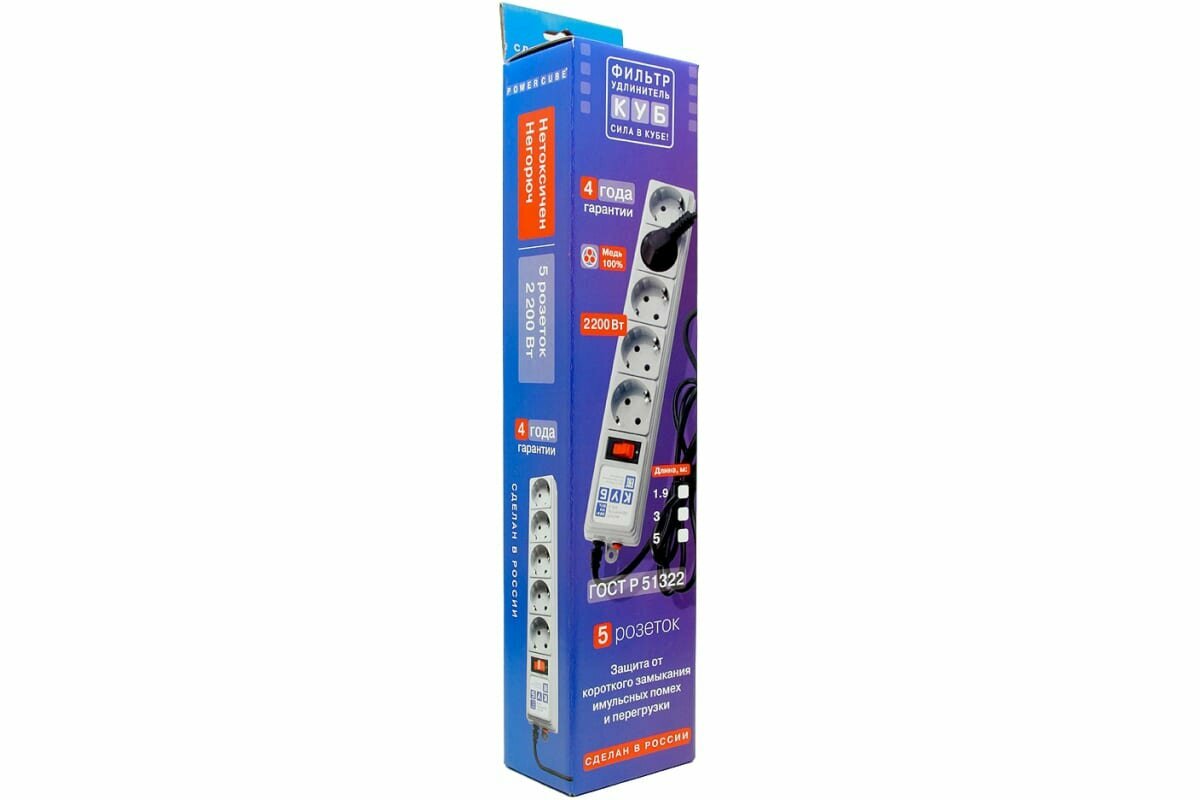 Сетевой фильтр Power Cube B 1.9 м 5 розеток (серый) 10А/2.2кВт(SPG-B-6)