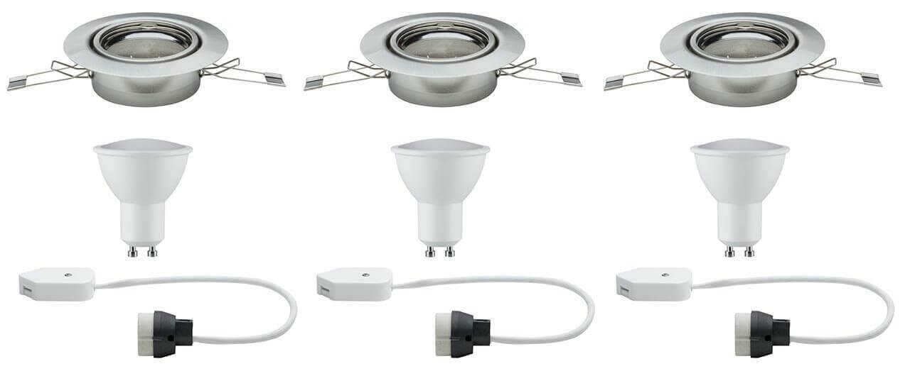 Светильник встраиваемый Paulmann LED D90мм 4.5Вт 340Лм 2700К GU10 230В Железо шероховатое Набор 3 шт. 93846