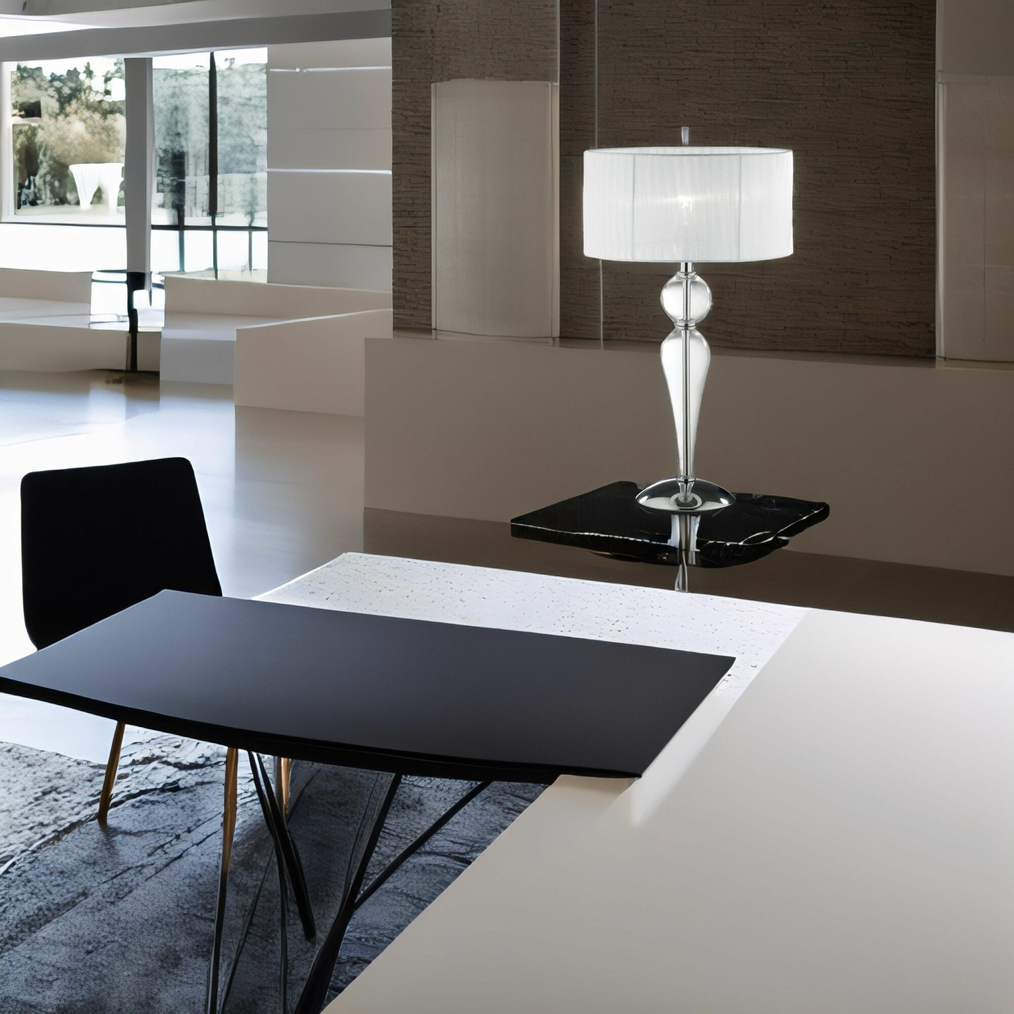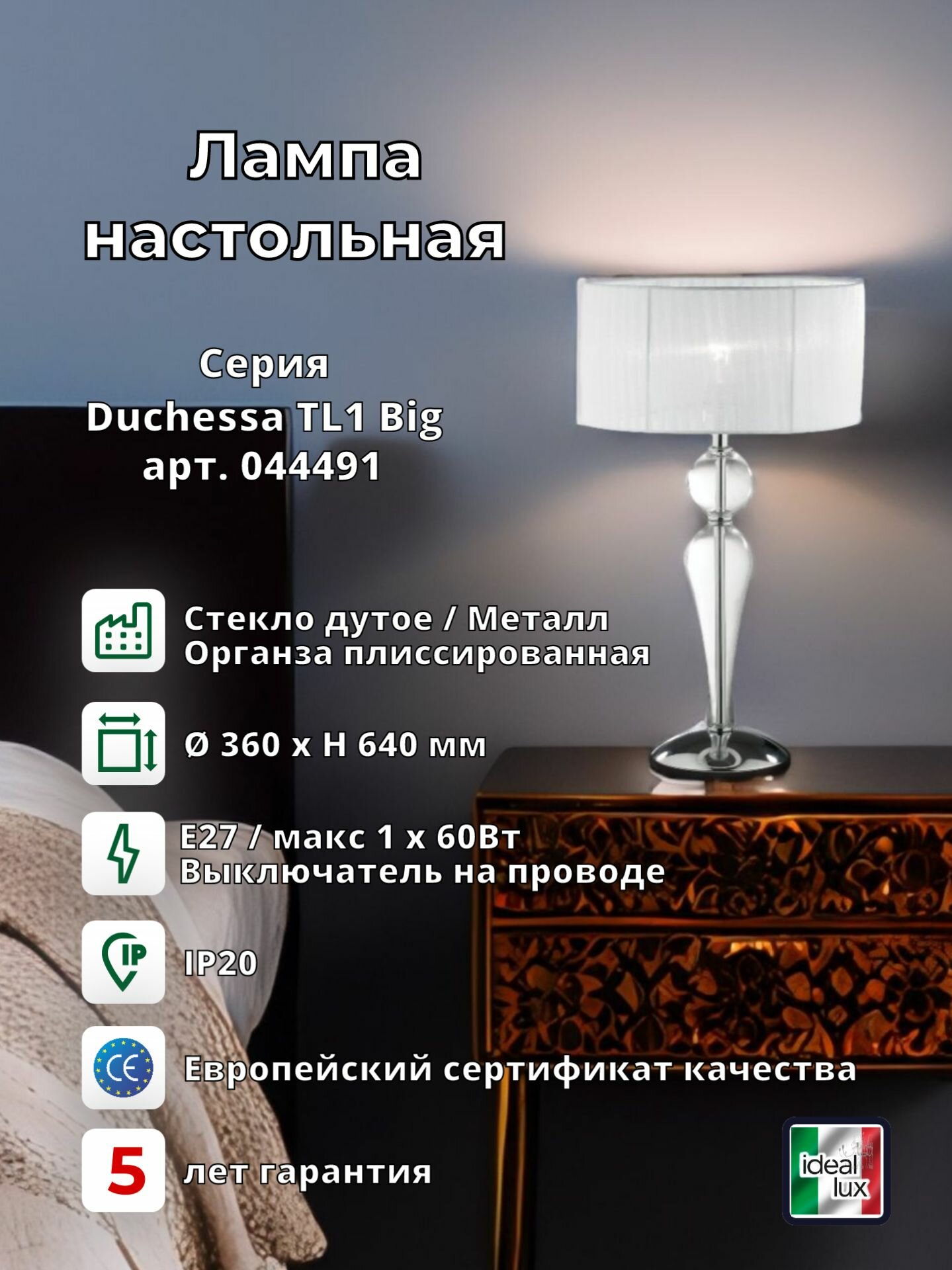 Светильник настольный ideal lux Duchessa TL1 Big макс.1х60Вт IP20 Е27 230В Белый/Хром Органза Стекло Металл Выключатель Без лампы 044491.