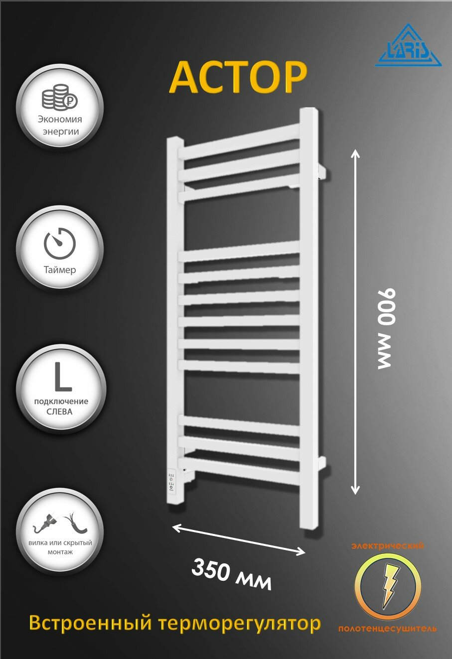 Полотенцесушитель электрический Laris Астор ЧК12 350х900 белый муар, левый (73207669)