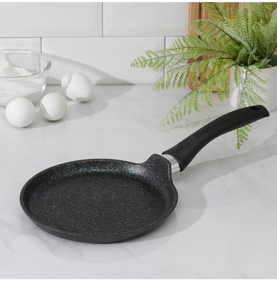 Сковорода блинная Granit ultra, d=22 см, пластиковая ручка, антипригарное покрытие, цвет чёрный
