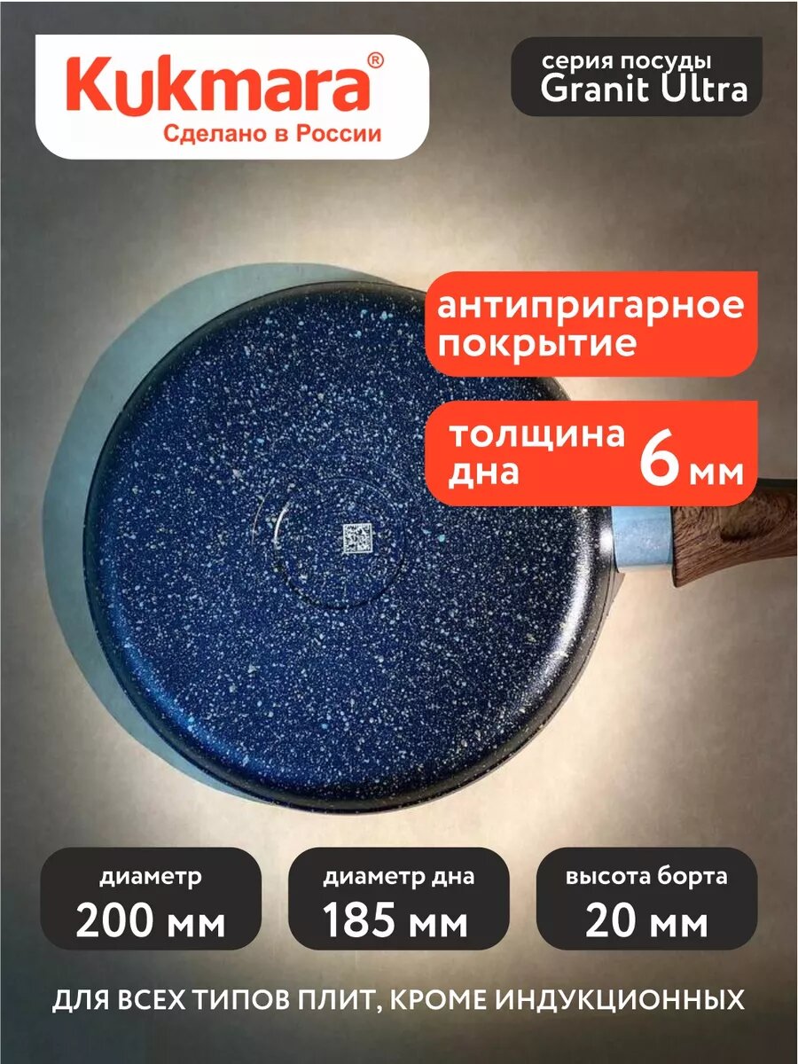 Сковорода Kukmara блинная 200 мм с индукционным дном, Granit Ultra ( blue) , сковорода для индукционных плит/блинница Granit Ultra