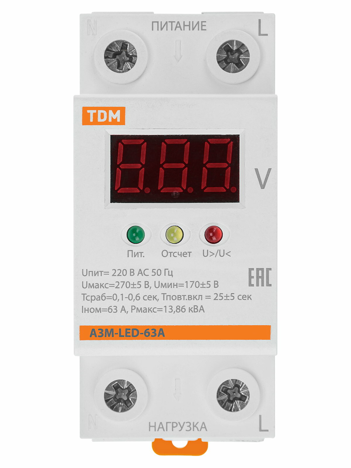 Реле напряжения 1ф серии АЗМ с LED-дисплеем 63А-220В TDM
