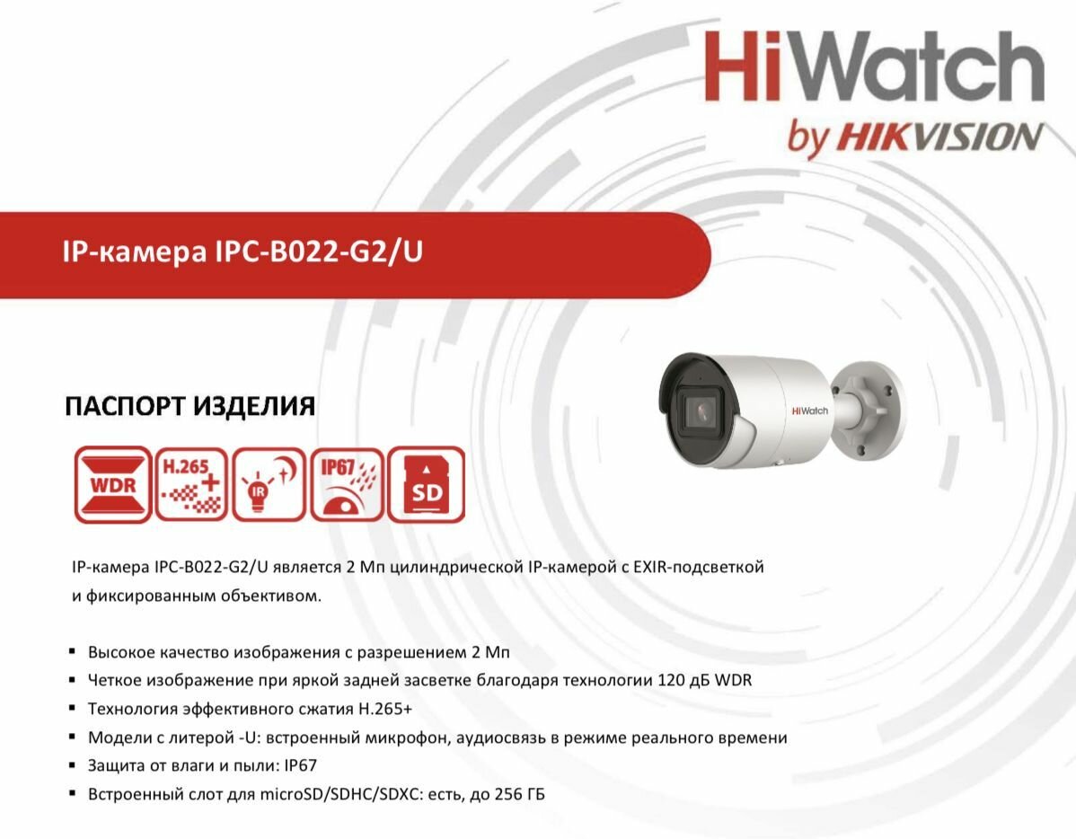 Ниже Вы можете прочитать отзывы на IP камера HiWatch PRO IPC-B022-G2/U (2,8 mm) уличная 2МП 1920x1080 H.265+ 107гр IP67 PoE белая, ознакомится с подробными характеристиками, посмотреть интересные обзоры и фотографии на IP камера HiWatch PRO IPC-B022-G2/U (2,8 mm) уличная 2МП 1920x1080 H.265+ 107гр IP67 PoE белая.