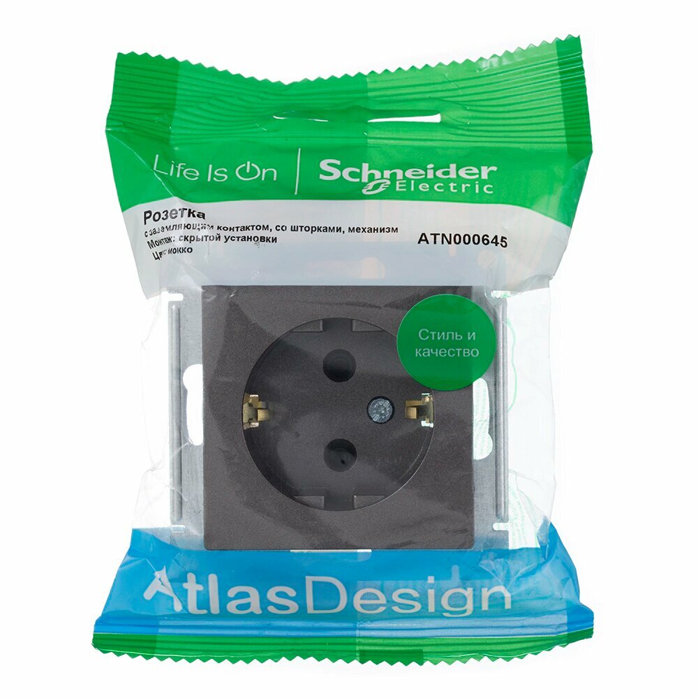Розетка ATLASDESIGN, скрытый монтаж, с заземлением, со шторками, мокко | код. ATN000645 | Schneider Electric (4шт. в упак.)