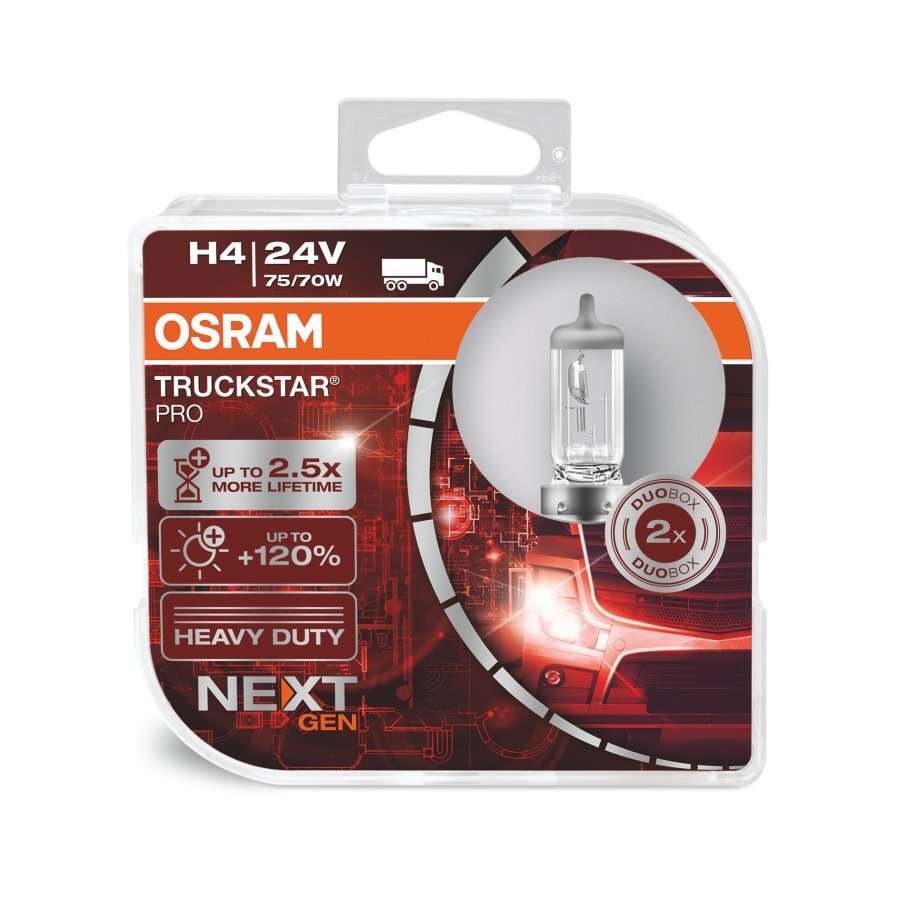 Галогенная лампа OSRAM H4 75/70 P43t-38 +100% TRUCKSTAR PRO 2шт 24V, 2 шт., 64196TSP-HCB/Автолампы