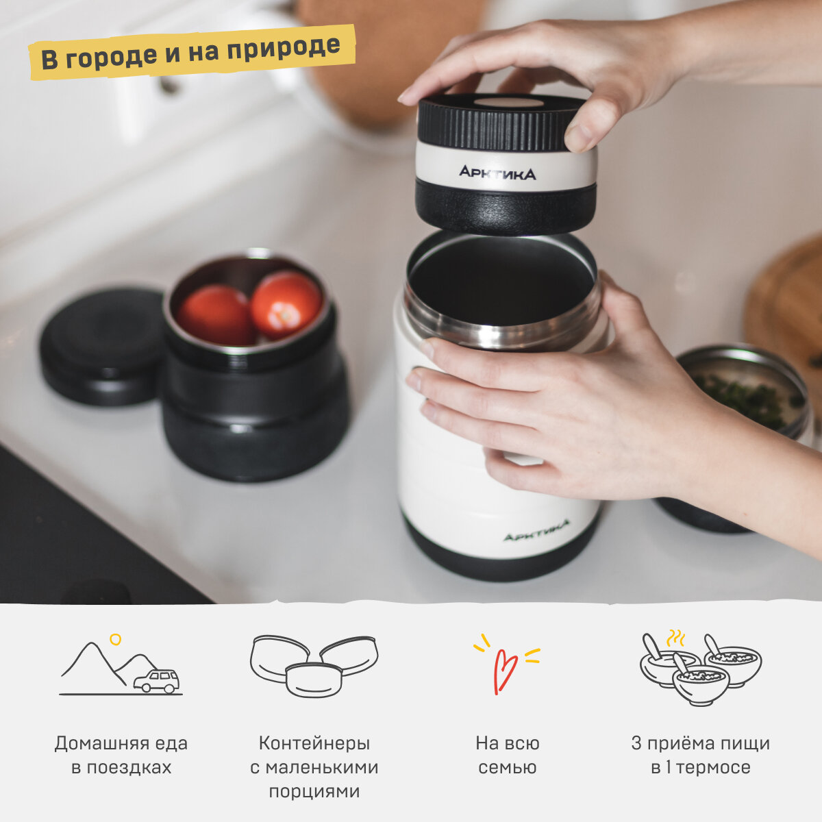 | Дополнительная информация | позволяет хранить несколько блюд одновременно; возможно использование термоса без внутренних контейнеров |