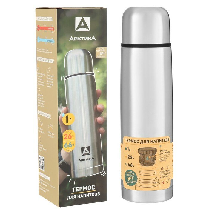 Термос Арктика для напитков 101-1000P 1л. серебристый (101-1000P/SIL)