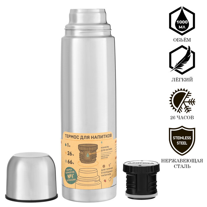 Классический термос Арктика 101-1000P 1 л (серебристый)