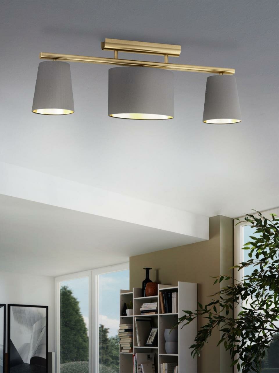 Купить Eglo 99486 Светильник потолочный ALMEIDA 2, 3x40W, E14, L810, B155, H280, сталь/текстиль, капучино/латунь 99486