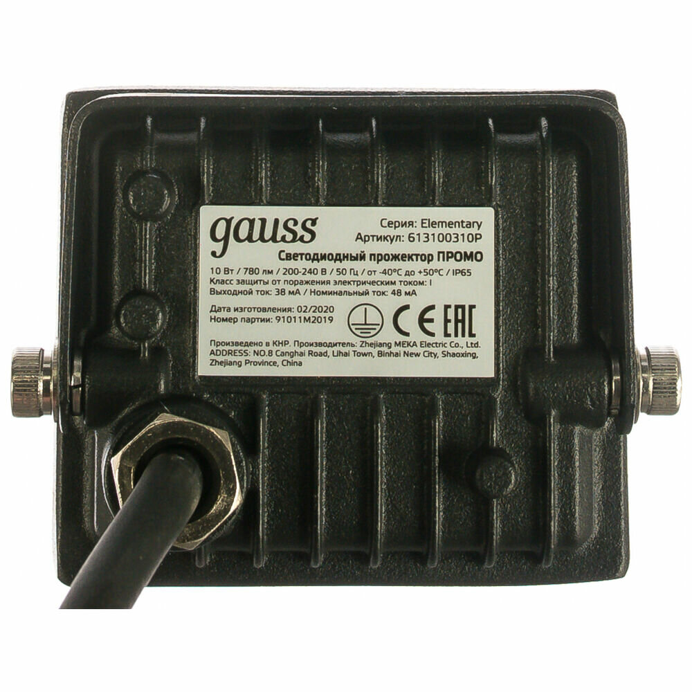 Светодиодный прожектор Gauss Elementary 10W 780lm IP65 6500К черный 613100310