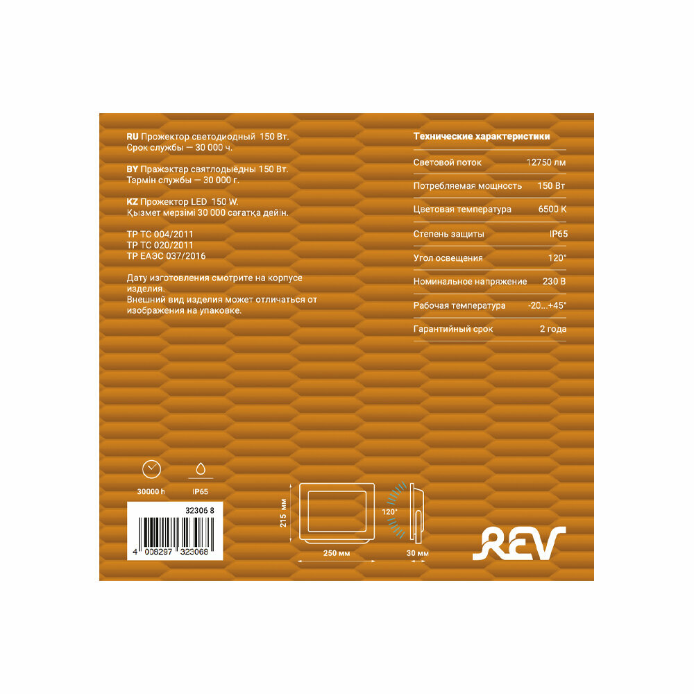 Прожектор светодиодный REV ДО-150 150 Вт 220 В IP65 250х215х30 мм 6500К (32306 8)