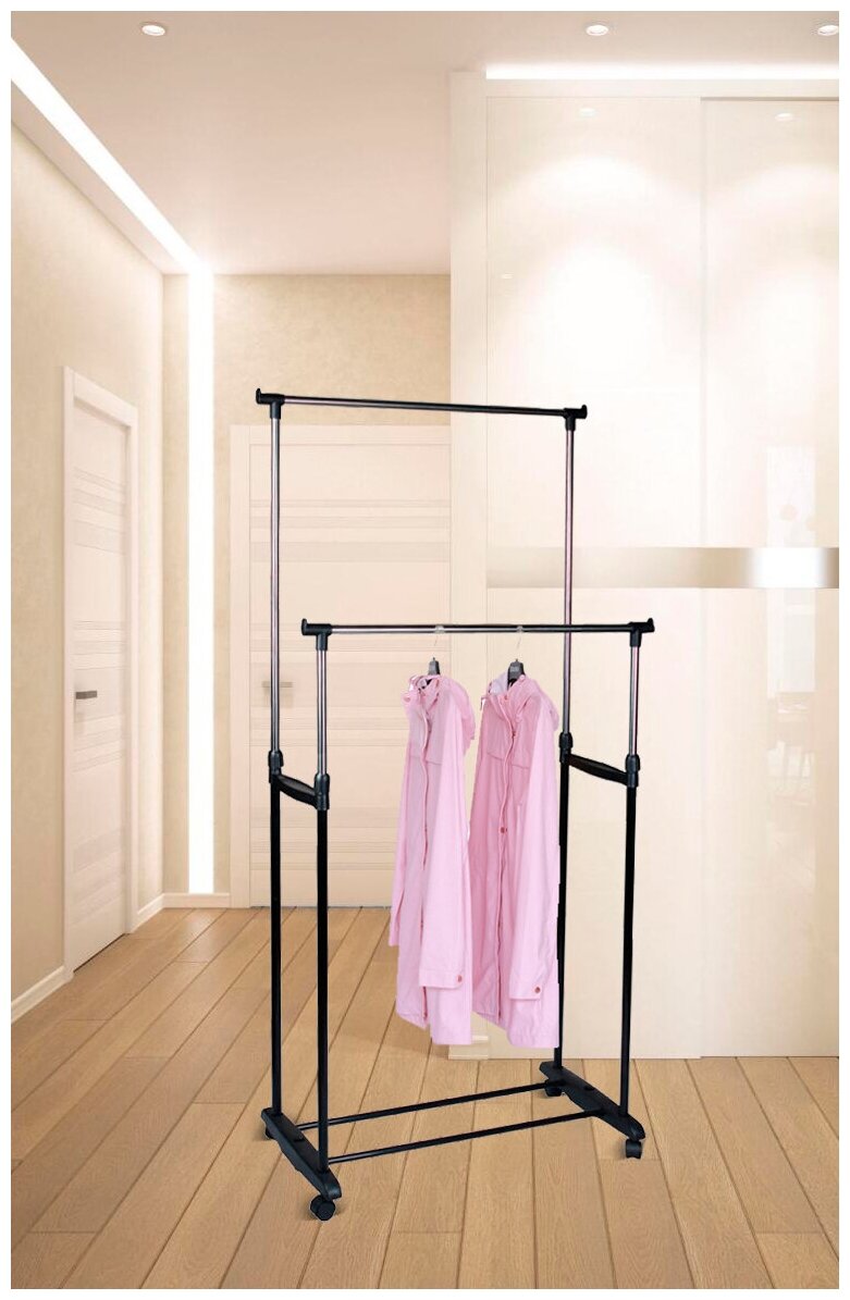 СохранитьВешалка напольная CR465 на колёсах 2 перекладины CR465, размер: 81\42\96\170см интересное: