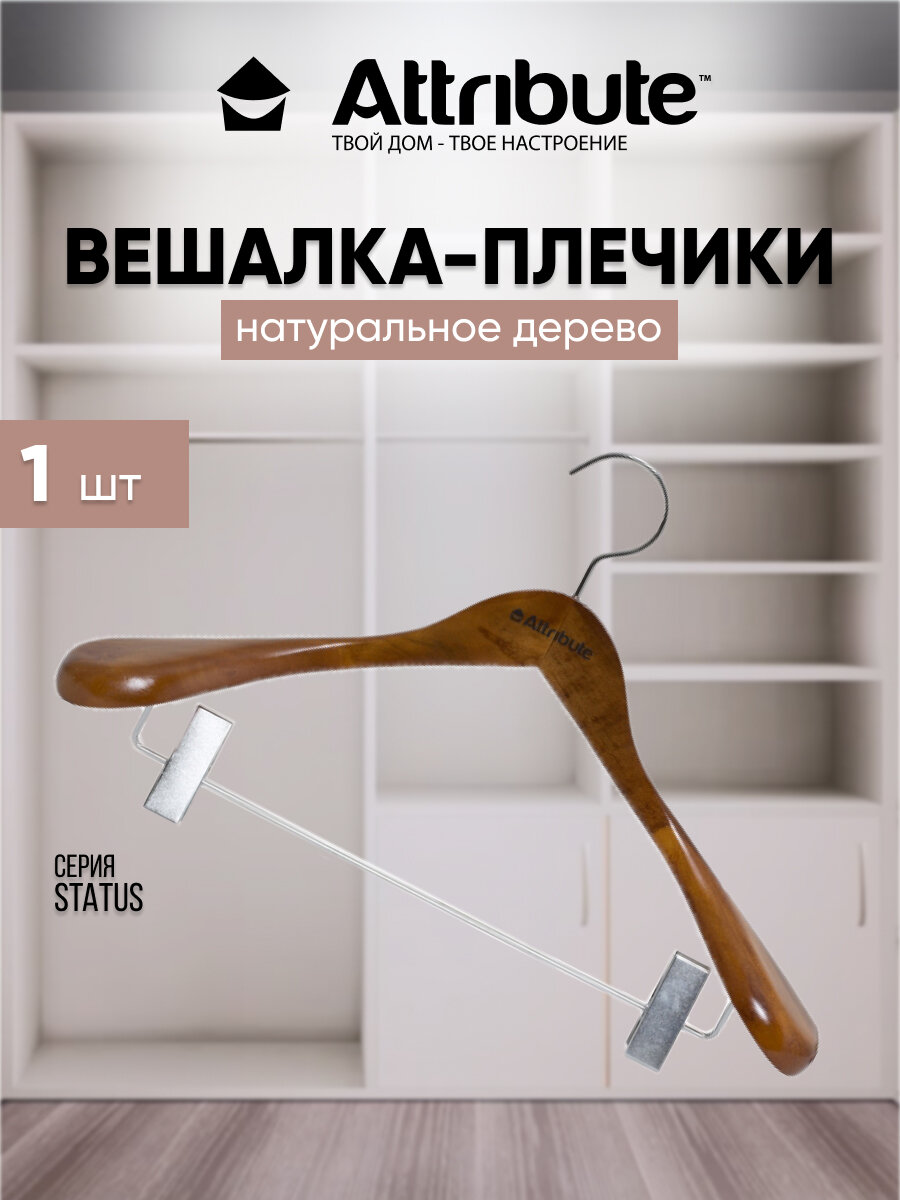 Вешалка-плечики для костюма с клипсами "STATUS" Attribute, натуральное дерево