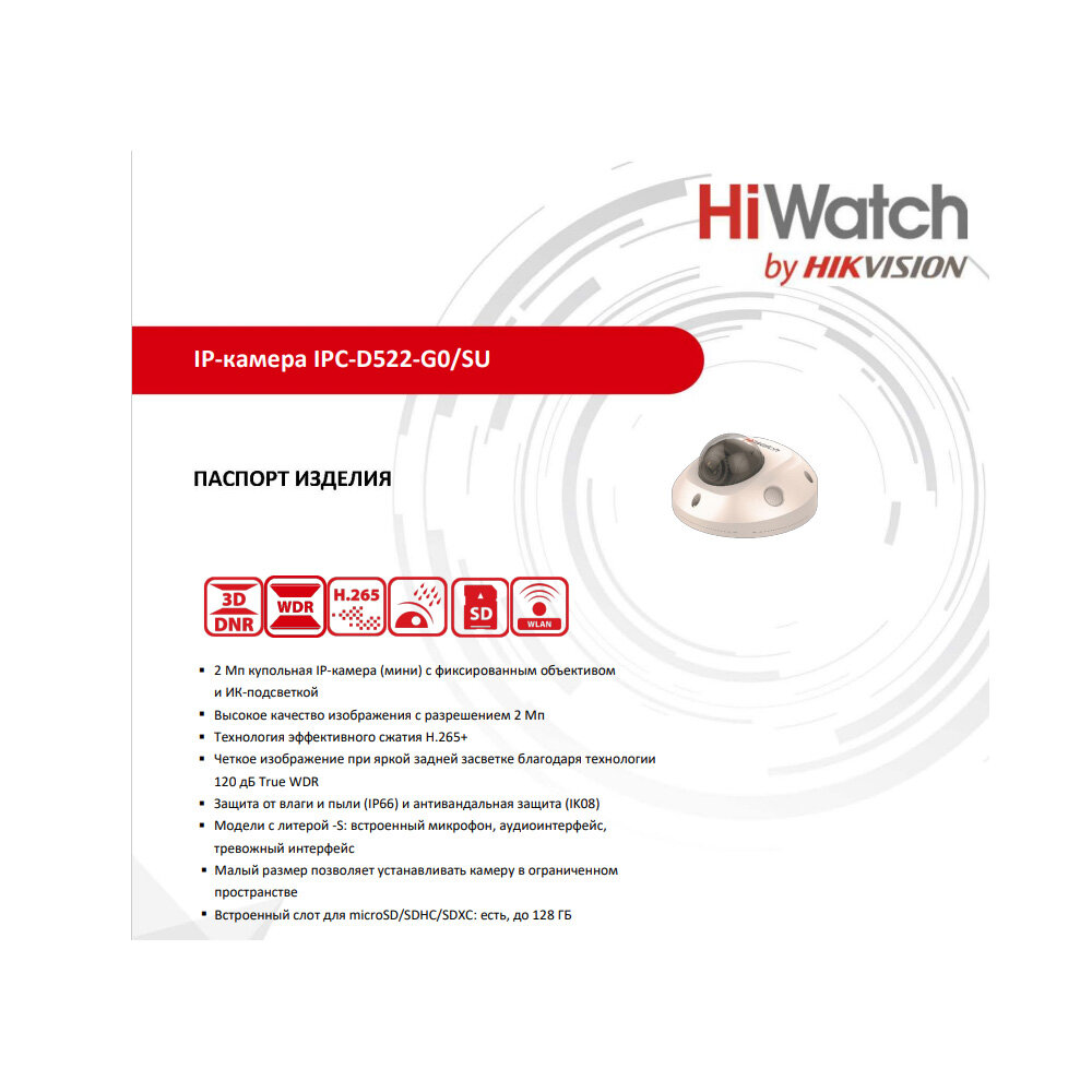 HiWatch IP-камера IPC-D522-G0-SU (4mm) с EXIR-подсветкой до 10м интересное: