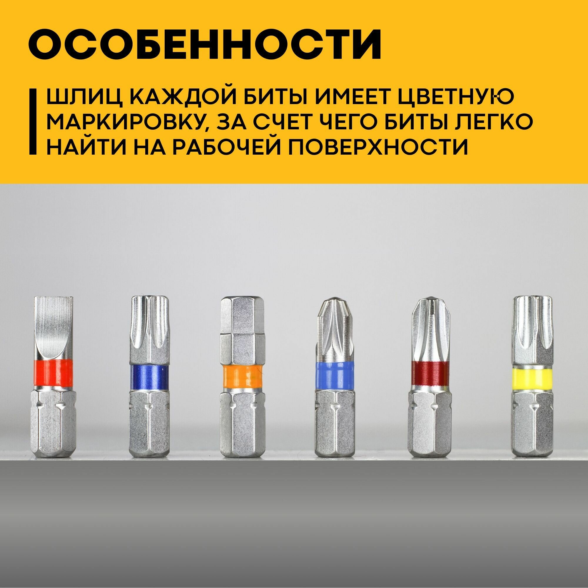 | Биты подробно | 25 мм: PH1, PH2 (x2), PH3, PZ1, PZ2 (x2), PZ3, SL3, SL4, SL5, SL6.5, H3, H4, H5, H6, T10, T15, T20, T25, T27, T30, T40, T10H, T15H, T20H, T25H, T27H, T30H, T40H |