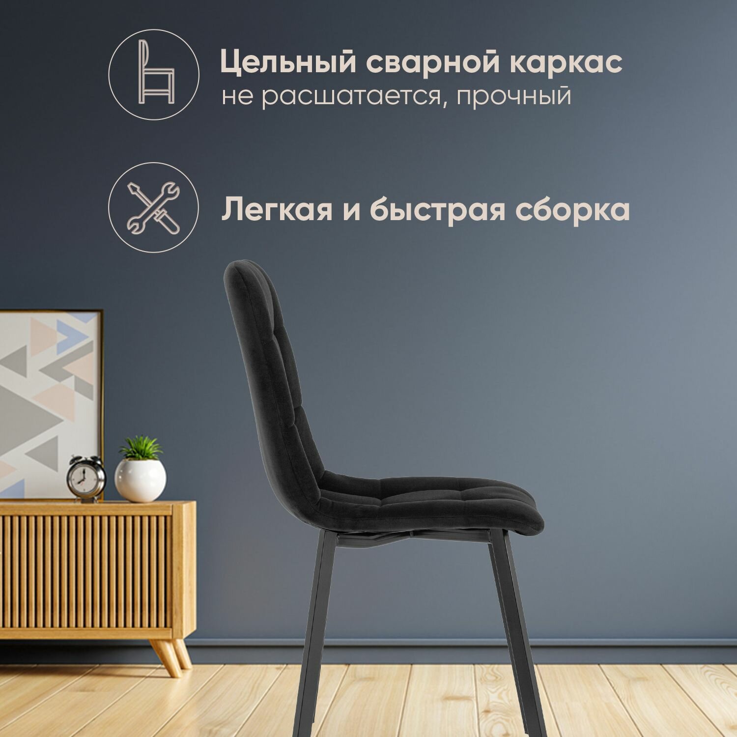 СохранитьСтул для кухни обеденный Oliver Square велюр черный (комплект 2 стула) интересное: