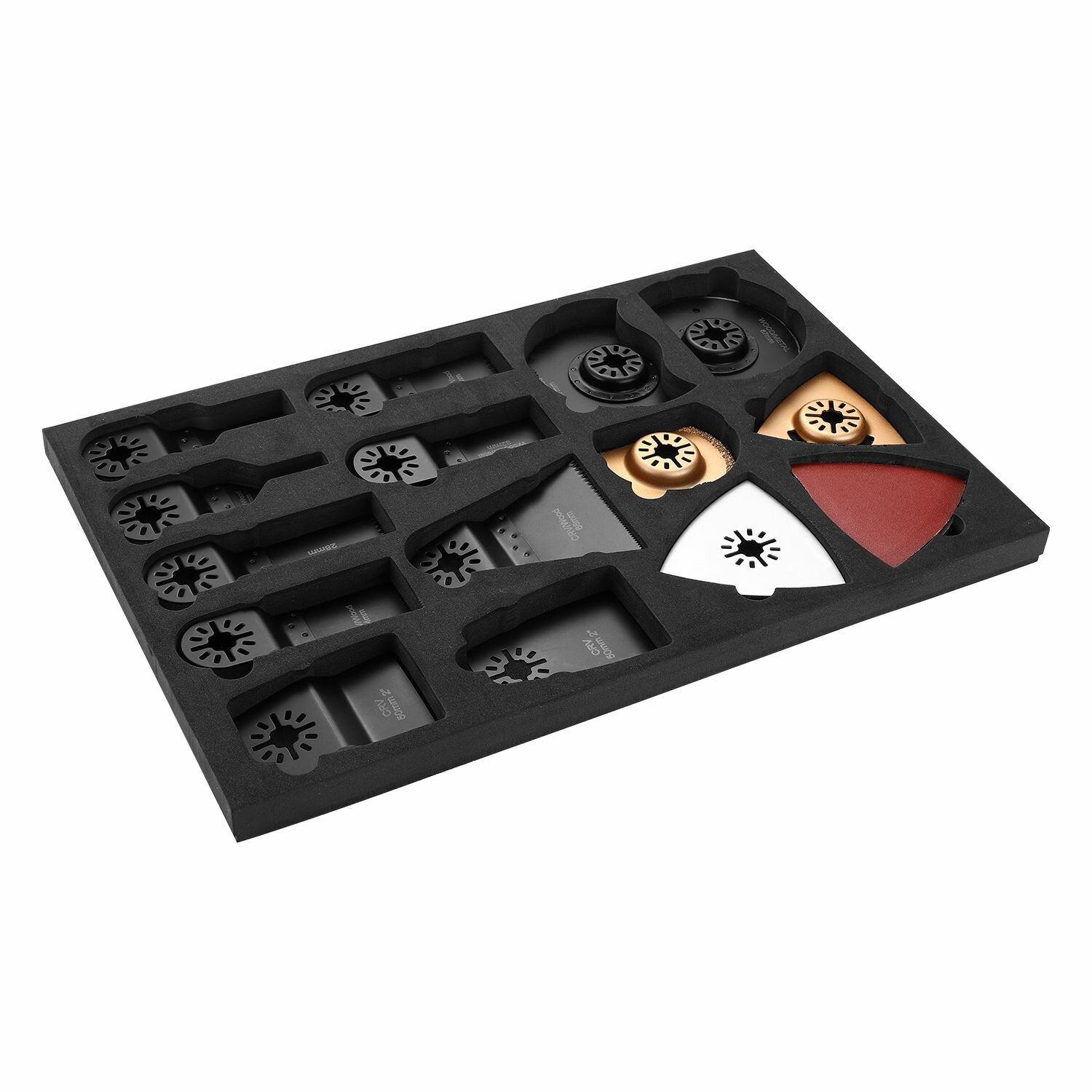 | Состав набора | пильный диск 34.1X0.66X18T CRV; пильный диск 34.1X0.66X14T CRV; пильный диск 10x0.66x18T CRV; пильный диск 20 x0.66x18T CRV; пильный диск 32.5 x0.8x18T BIM(M42+D6A); пильный диск 28ммx48ммx0.52x18T CRV; пильный диск 68x0.66x18T CRV; полукруглый диск для резки древесины (87мм); биметаллический пильный диск (87 мм); плоский скребок; изогнутый скребок; полукруглый диск 64; треугольное лезвие 80; диск EVA 80; наждачная бумага 80 мм (60х2/80х2/120х2/180х2/240х2) |