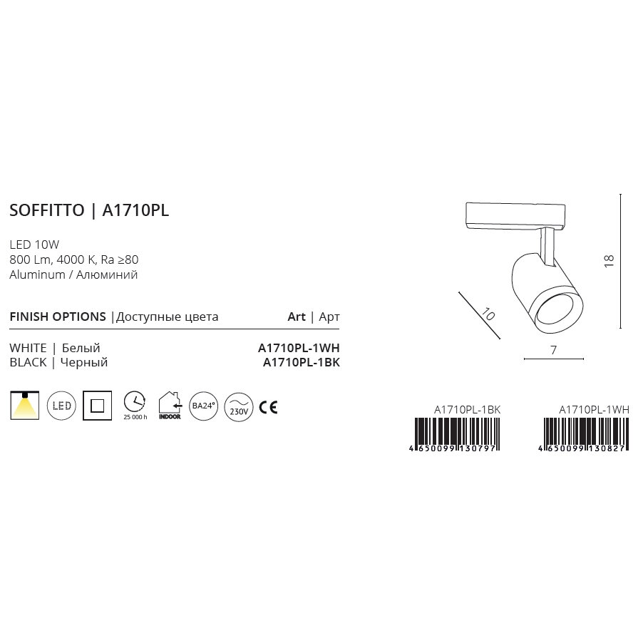 Ниже Вы можете прочитать отзывы на Трековый светильник-спот Arte Lamp Soffitto A1710PL-1BK, кол-во ламп: 1 шт., цвет арматуры: черный, цвет плафона: черный, ознакомится с подробными характеристиками, посмотреть интересные обзоры и фотографии на Трековый светильник-спот Arte Lamp Soffitto A1710PL-1BK, кол-во ламп: 1 шт., цвет арматуры: черный, цвет плафона: черный.
