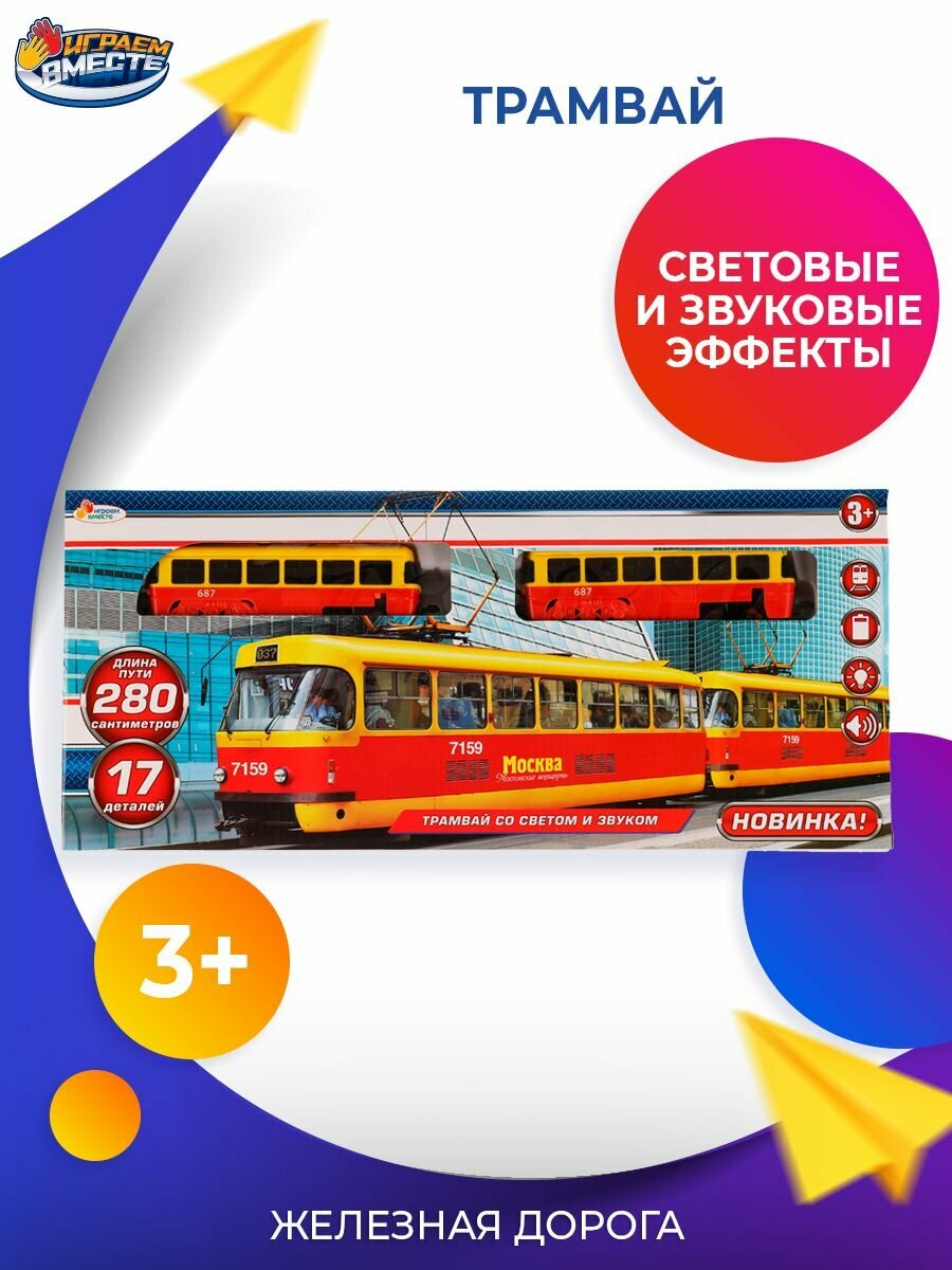 Купить Играем вместе Железная дорога «Трамвай длина», пути 280 см, свет и звук