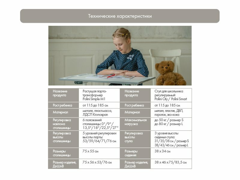 | Дополнительная информация | минимальная высота стула 75,5 см; для ребенка от 6 лет; стул - трансформер подходит для стола, парты высотой: 64, 70, 76 см; материал сиденья - эко-кожа |