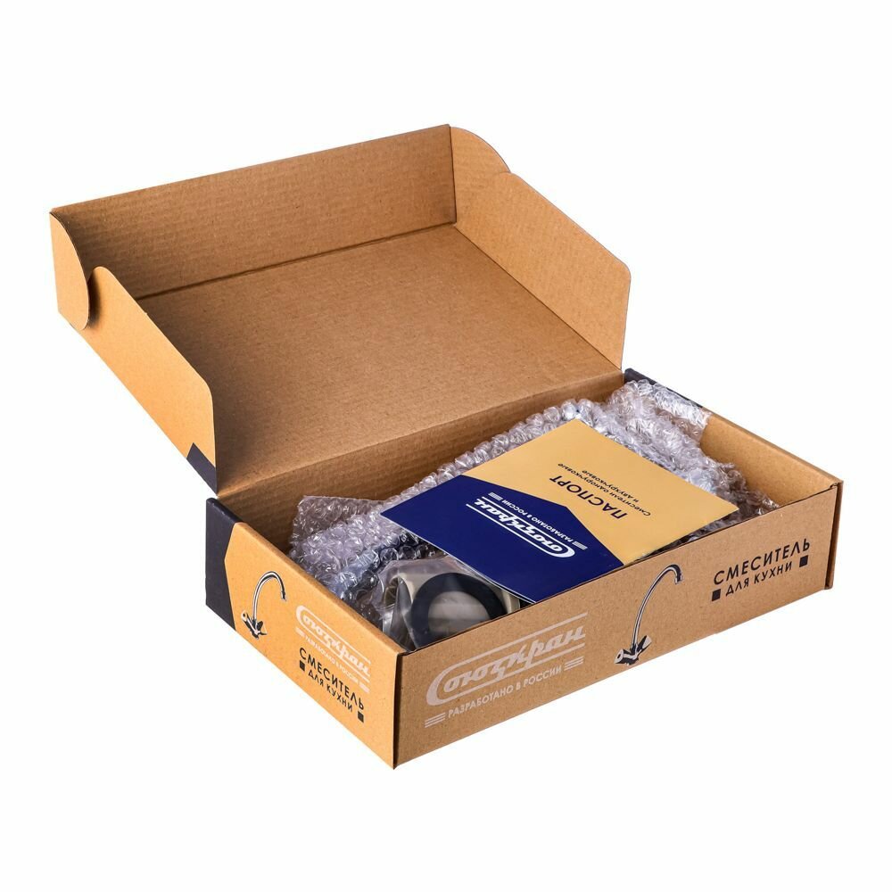 Смеситель для кухни СоюзКран поворотный излив 20 см, керамический кран-буксы 1/2, хром, цинк SK01-T204 567-063