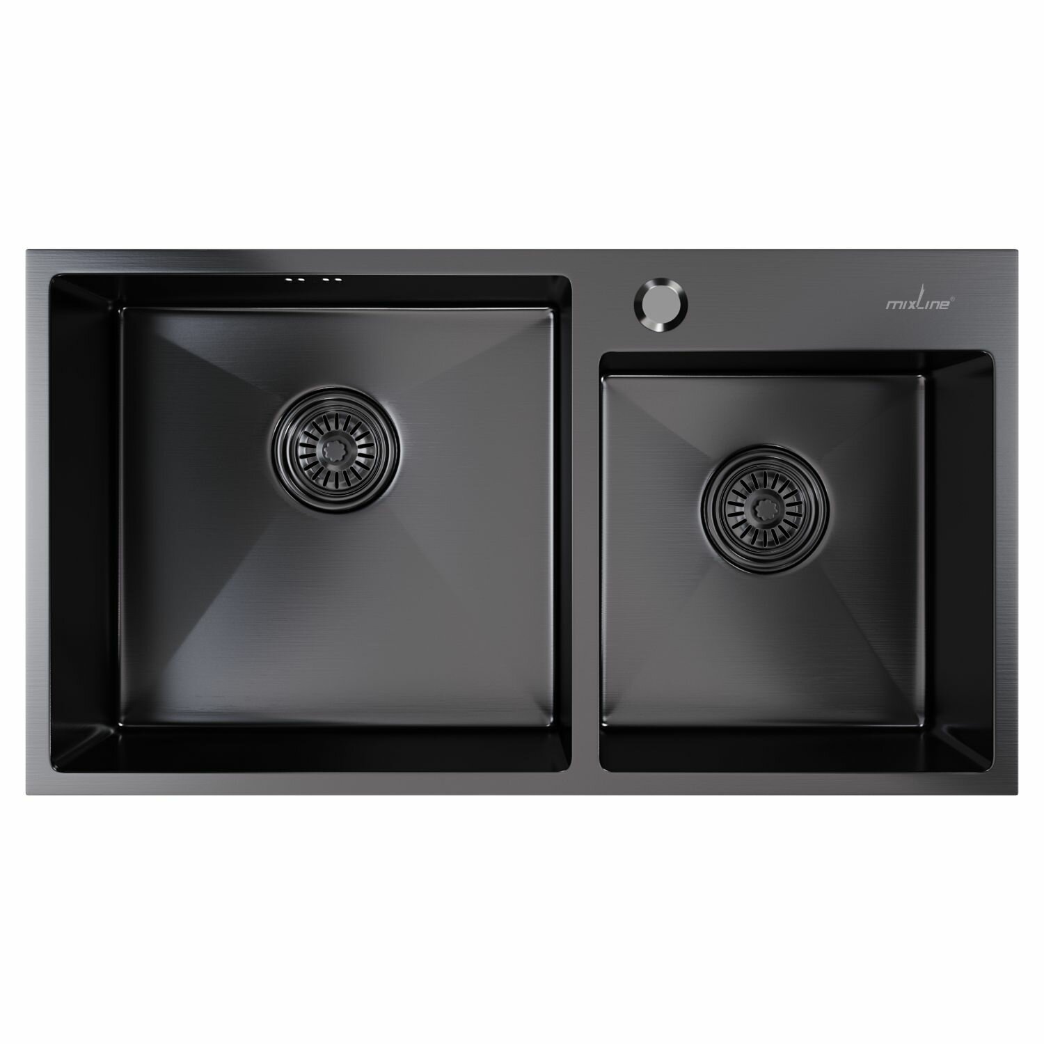 Кухонная мойка Mixline Pro 72х40 двухчашевая, черный графит (4630099745788)