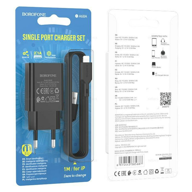 Сетевое зарядное устройство Borofone BA68A Glacier, 2.1A, черный