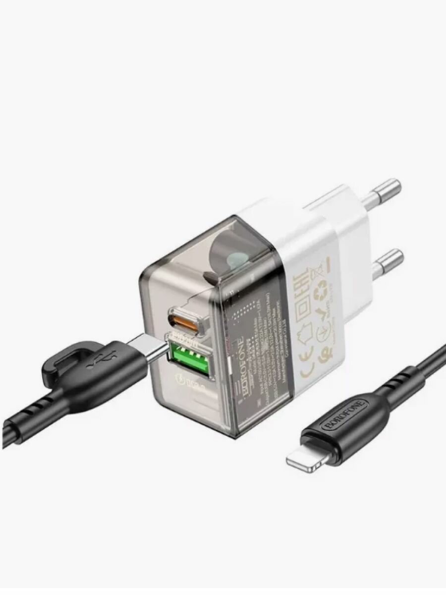 Зарядка для телефона BOROFONE BA55A Crown Speed 1xUSB QC3.0, 3A, 1хUSB-C PD, 20W (белый)