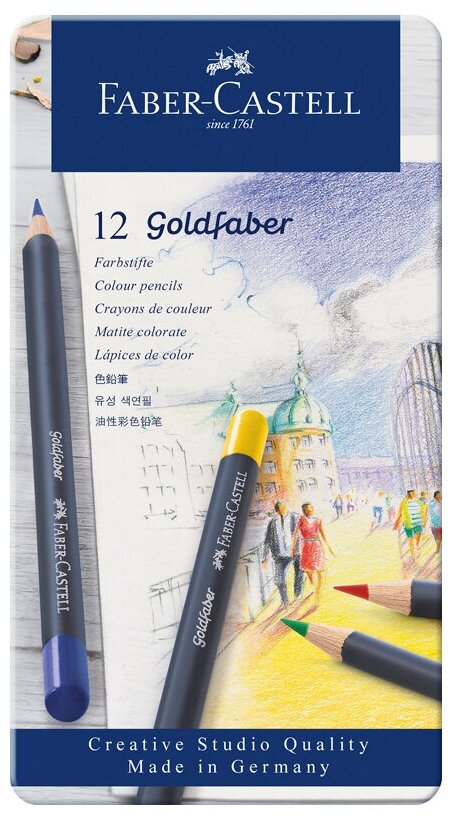 Faber-Castell Набор цветных карандашей Faber-Castell Goldfaber 12 штук в металлической коробке