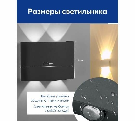 Настенный светодиодный светильник 230V 4000K черный IP54 DH101