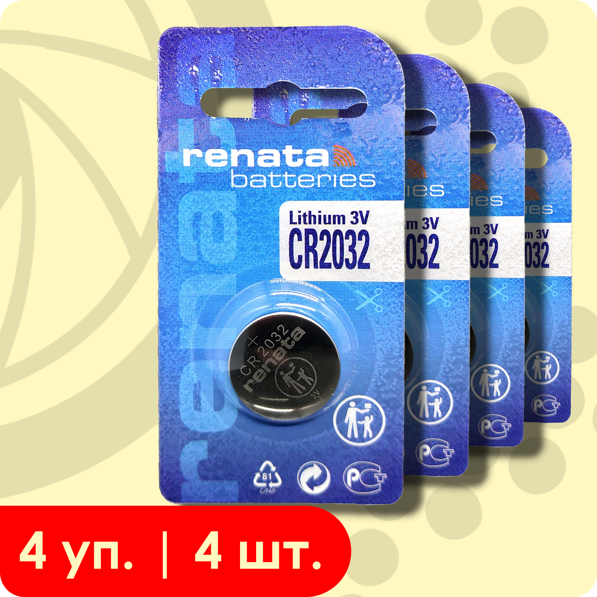 Купить Renata 2032 (CR2032/5004LC) | 3 вольта Литиевая батарейка - 4шт.
