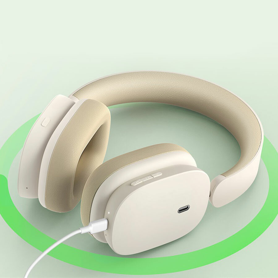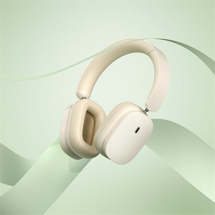 Беспроводные наушники BASEUS Bowie H1, Hybrid ANC, 4 mic ENC, 800 mAh, 70 часов, BT5.2, Белый+Бежевый