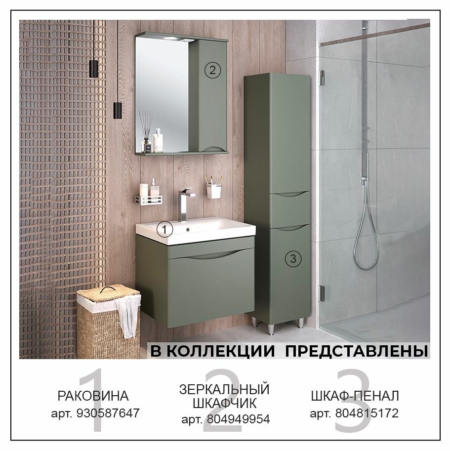 Тумба с раковиной Runo Афина 60, подвесная, эмаль, цемент, умывальник Moduo 60, выпуск