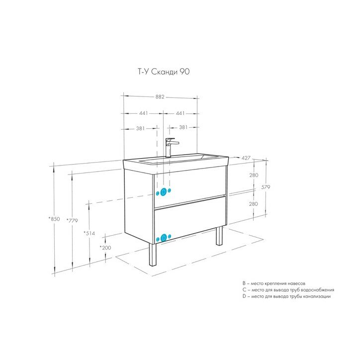 Купить Тумба под раковину Aquaton Сканди 90 1A251901SD010